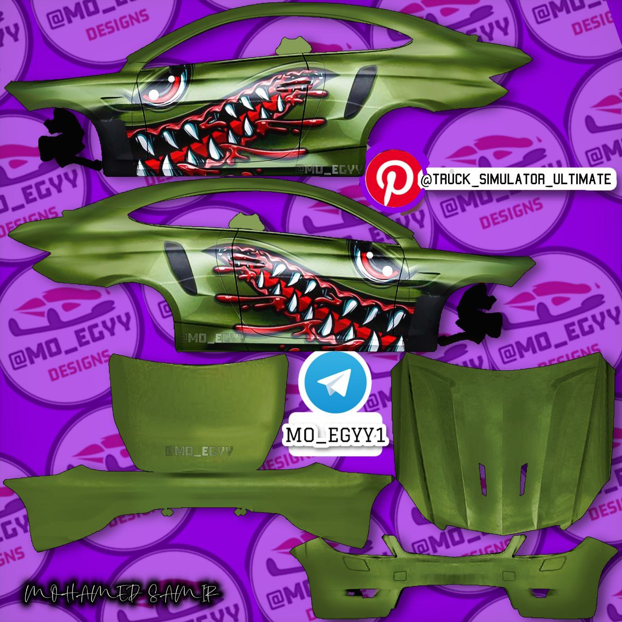 Dengan balutan hijau metalik dan desain monster reptil di samping, mobil ini tampil buas dan tak terbendung. Grafis gigi tajam dan mata lizard menegaskan bahwa ini bukan sekadar mobil biasa—ini adalah binatang buas jalanan!
